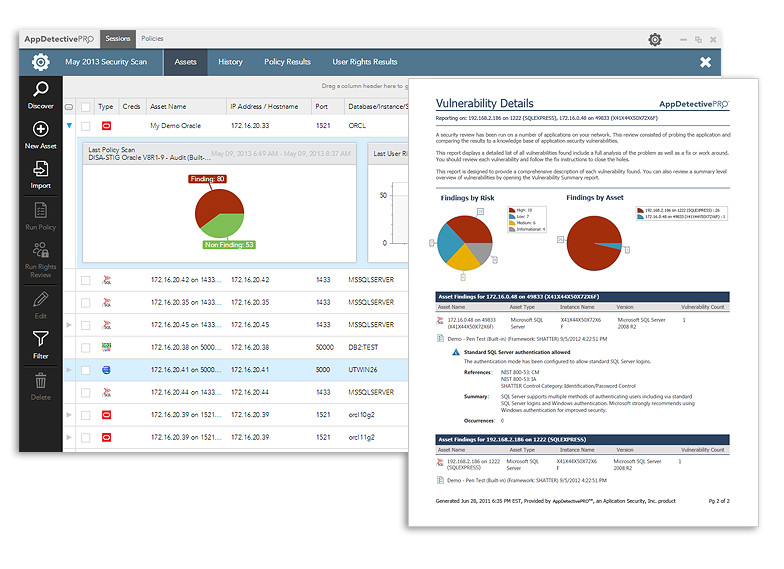 Databases zijn een aantrekkelijk doelwit voor cyber criminelen, en veel organisaties schieten tekort in het beschermen van deze kritieke verzameling van klantgegevens en intellectueel eigendom. AppDetectivePRO is database scanning software, die bedrijven gebruiken voor het identificeren en verhelpen van kwetsbaarheden, configuratie fouten, rogue installaties en toegangsproblemen in hun database omgeving.